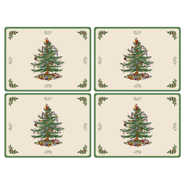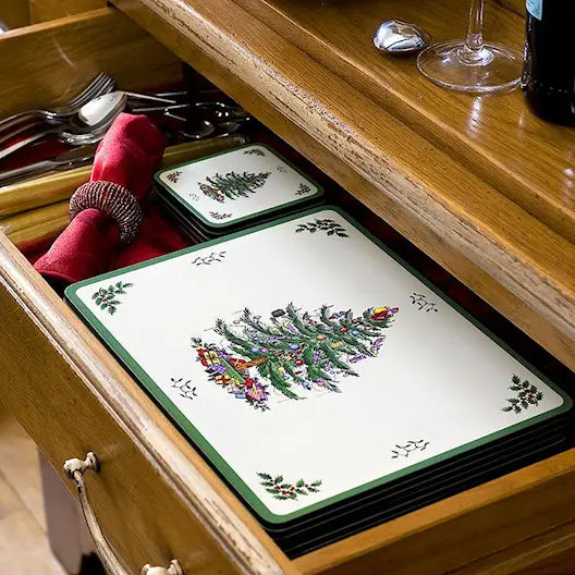 De här bordstabletterna skapar en varm och inbjudande julkänsla med Spodes ikoniska granmotiv, lika älskat idag som när det introducerades 1938. Underläggen kommer i en vacker presentask och är perfekta som gåva eller för att ge det dukade bordet en extra touch av tradition.