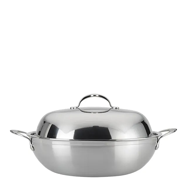 Hestan Probond Wok med lock 36 cm Stål är den perfekta kompanjonen för att ta din matlagning till nästa nivå. Den är handgjord i Italien med högsta precision och konstruerad med en trippelbotten och en responsiv aluminiumkärna som ger snabb och jämn värmefördelning, tillsammans med imponerande hållbarhet.
