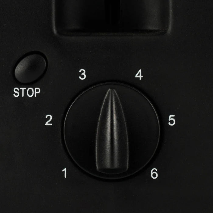Brödrosten är utrustad med en stoppknapp för att avbryta rostningen när som helst, och high rise-funktionen gör det enkelt att ta upp mindre skivor utan att bränna fingrarna. Ett löstagbart smultråg gör rengöringen smidig, och med sin kompakta storlek passar den lätt in på köksbänken.