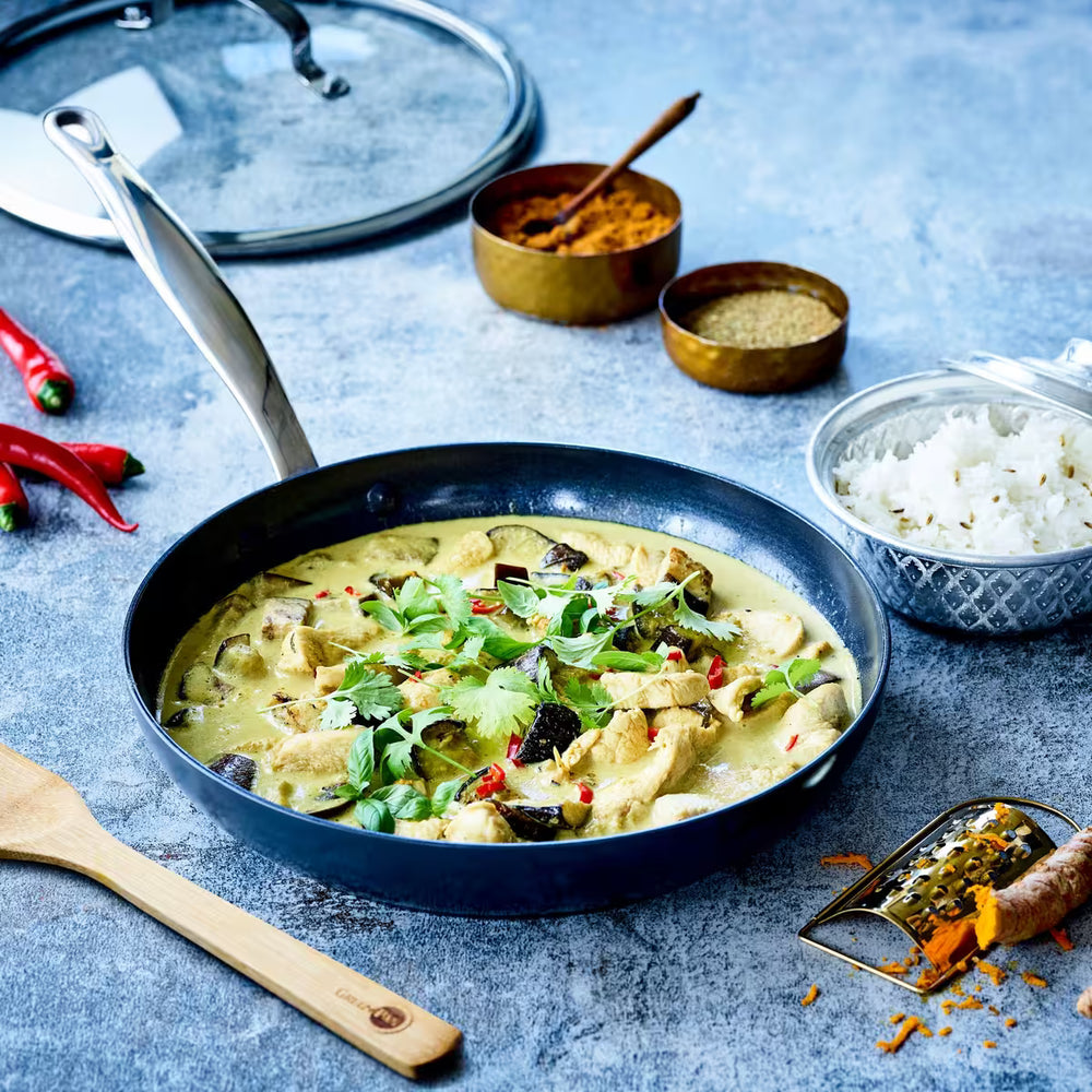 Tillverkad i slitstark aluminium med utmärkt värmeledningsförmåga, fungerar pannan på alla typer av spishällar – inklusive induktion – tack vare den Magneto™-förstärkta bottnen. Den keramiska non-stick-beläggningen Thermolon™ är inte bara PFAS-fri, utan även reptålig och tillräckligt slitstark för att klara användning av metallredskap. Det gör pannan till ett hållbart och tryggt val för daglig matlagning.