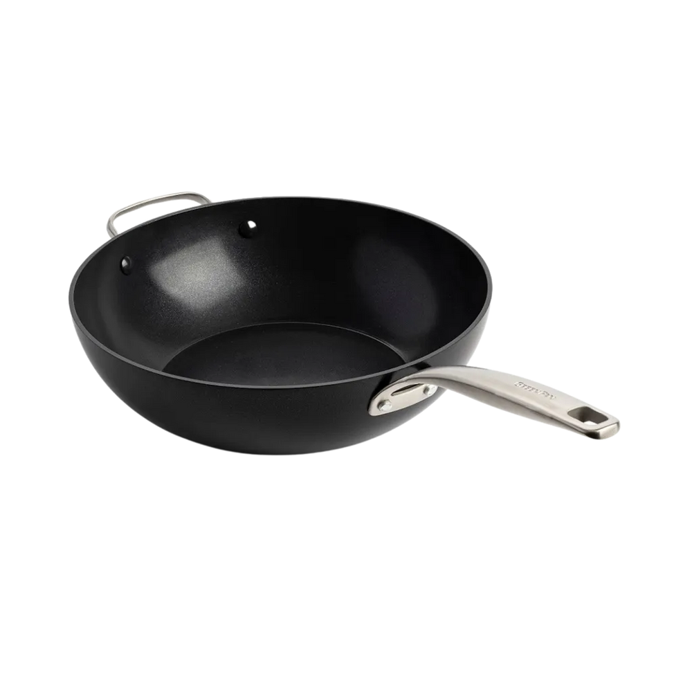 GreenPan Copenhagen Wokpanna 30 cm är ett elegant och funktionellt tillskott till ditt kök – perfekt för snabba vardagsrätter eller smakrika asiatiska klassiker. Med sin rymliga kapacitet på 4,8 liter och breda diameter på 30 cm får du gott om plats att woka grönsaker, steka nudlar eller tillaga hela måltider åt familjen.