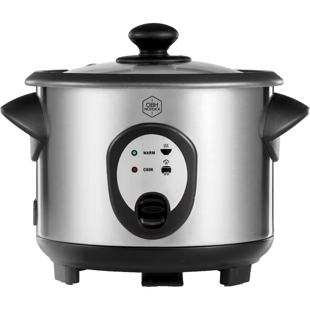 Inox från OBH Nordica är en stilren och effektiv riskokare i rostfritt stål som gör det enkelt att laga stora mängder ris – upp till 1,8 liter färdigt ris åt gången, vilket räcker till cirka 8–10 portioner. Perfekt när du vill slippa hålla koll på spisen eller använda flera kastruller.
