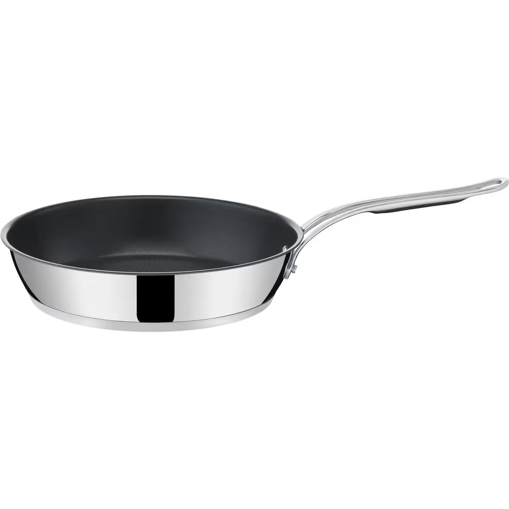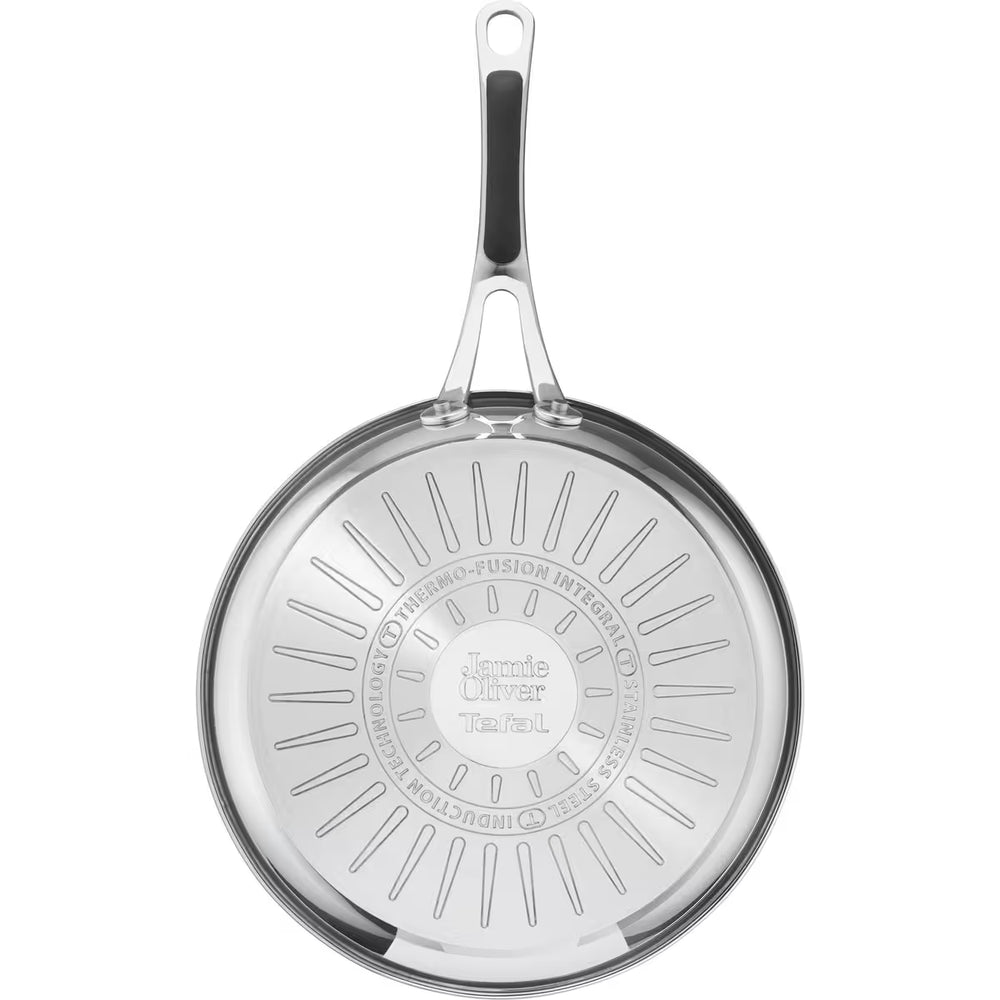 Pannan är utrustad med Thermo-Signal™-teknologi, som visar när den nått optimal temperatur för att börja tillagningen. Den titanförstärkta non-stick-beläggningen säkerställer att maten inte fastnar och gör rengöringen enkel. Designad av Jamie Oliver i samarbete med Tefal och kompatibel med alla spisar, inklusive induktion. Dessutom är den ugnssäker upp till 210 °C – perfekt för att avsluta rätter direkt i ugnen.