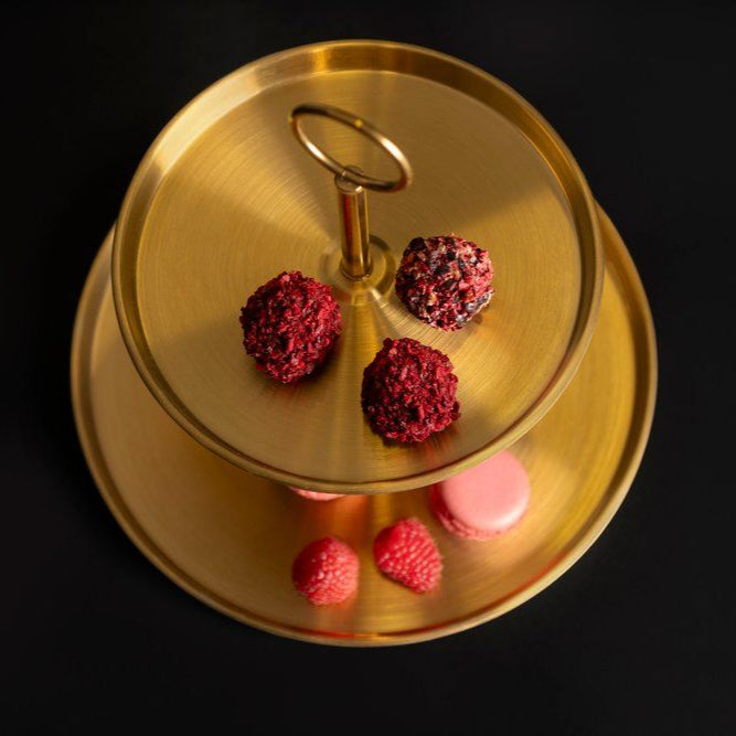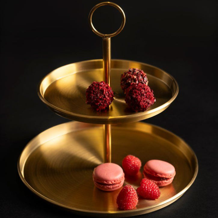 Maku Kakfat 2 våningar är ett stilrent fat i guldfärgat rostfritt stål som passar perfekt för både vardag och fest. Med två våningar får du gott om plats att servera kakor, frukt eller andra godsaker på ett snyggt sätt. Den eleganta designen gör att fatet även fungerar som en fin inredningsdetalj.