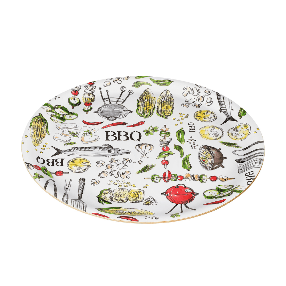 Mönstret BBQ från Cult Design hyllar sommarköket och glädjen av att laga mat och äta ute på verandan eller i trädgården. Denna stora och praktiska träbricka är perfekt för att servera mat eller dryck under dina utomhusmåltider och ger ett stilfullt och funktionellt tillskott till din sommarservering.