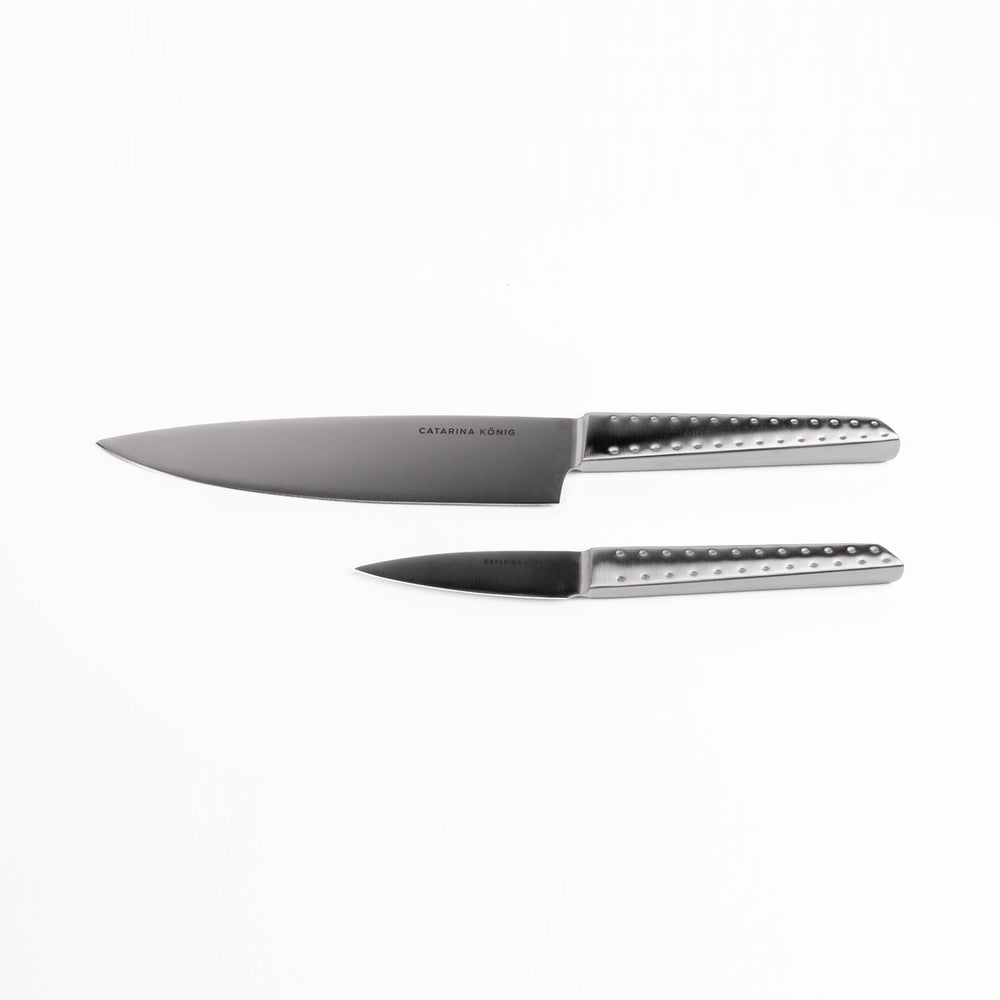Ett knivset med kockkniv och skalkniv som passar för både större och mindre uppgifter i köket. Knivarna är bekväma att arbeta med och ger bra kontroll vid hackning, skärning och finare arbete. Det diskreta mönstret ger ett personligt uttryck utan att ta över. Levereras i en exklusiv presentkartong och är ett fint val även som present.
