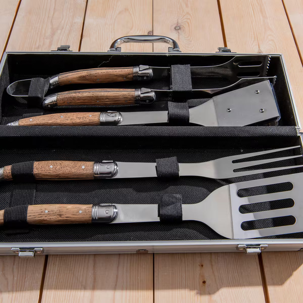 Ett exklusivt grillset som ger dig full kontroll vid grillen, oavsett om du lagar kött, fisk eller grönsaker. Setet innehåller stekspade, grilltång, grillgaffel och grillborste – noggrant utvalda redskap för både tillagning och rengöring.