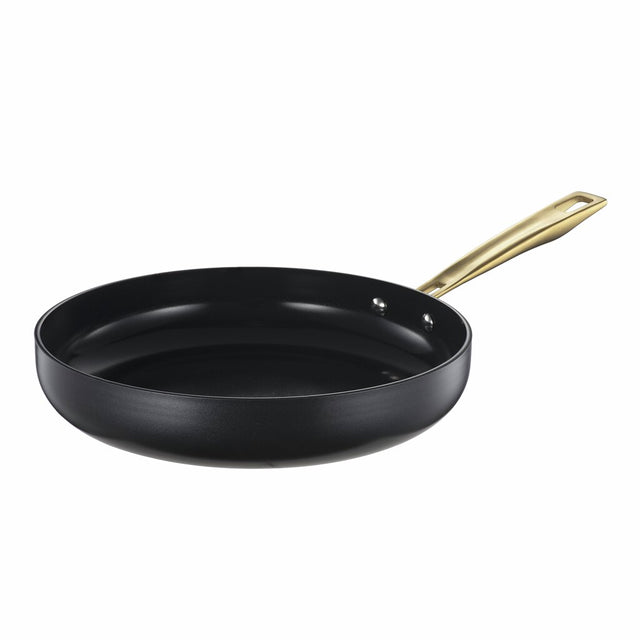 Den nattsvarta färgen med matta gulddetaljer skapar en varm känsla och gör pannan till ett snyggt blickfång i köket. Stekpannan fungerar på alla typer av hällar, tål ugn upp till 300 °C och kan diskas i maskin.
