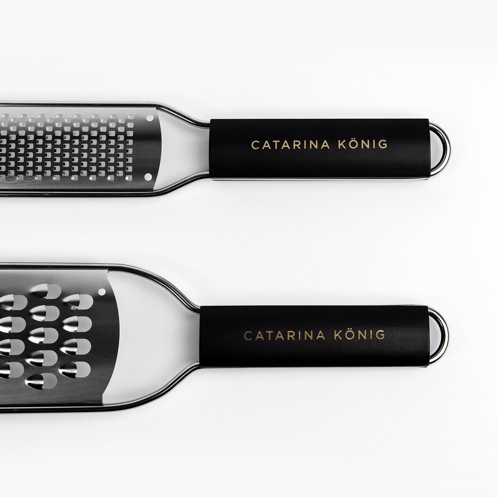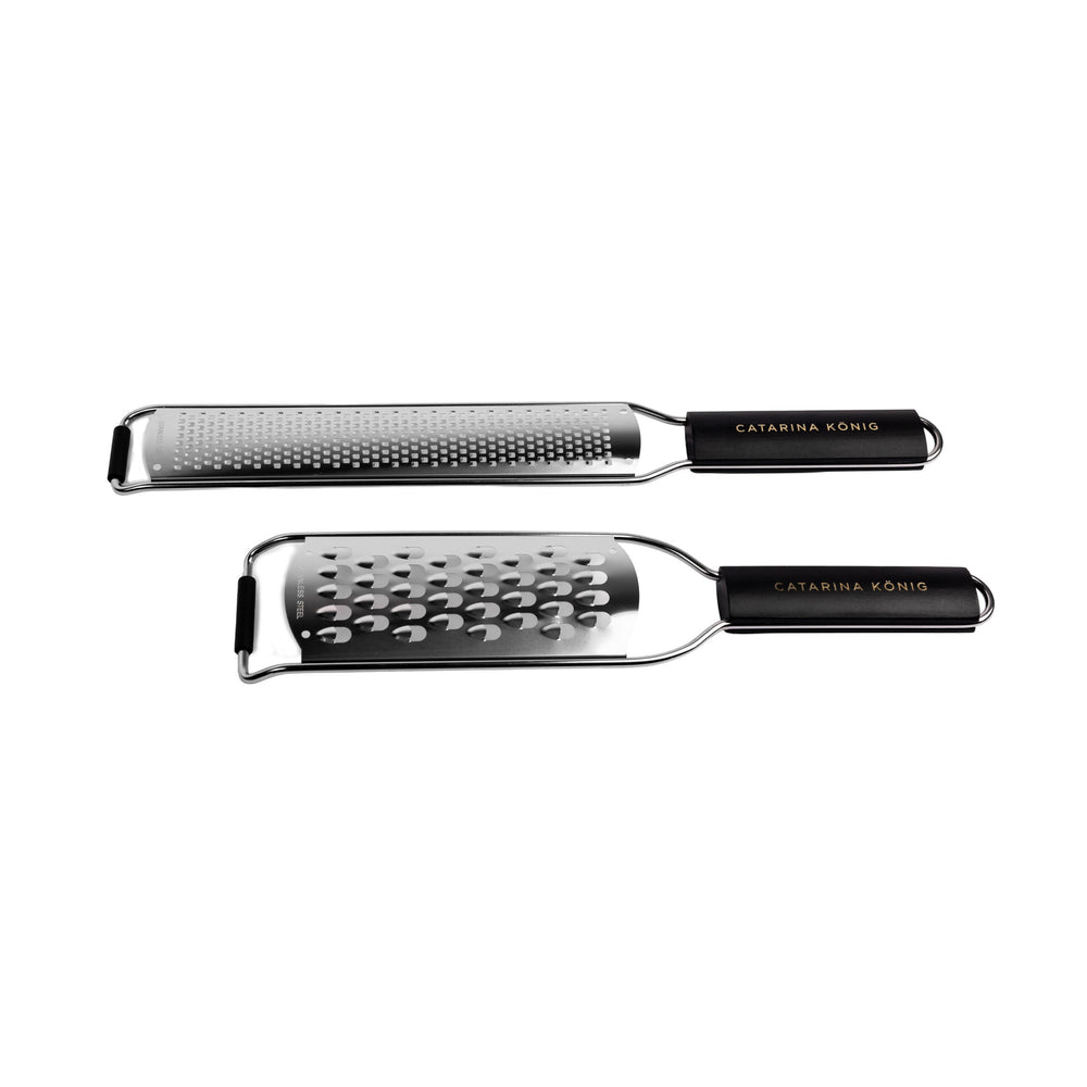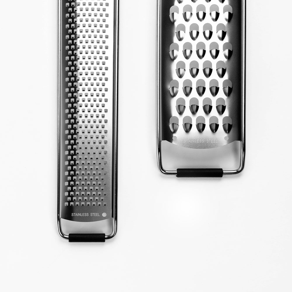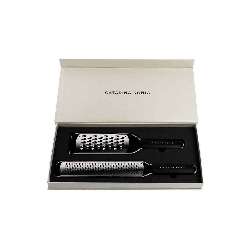 Ett användbart set med två rivjärn som täcker de flesta behov i köket. Det grövre rivjärnet passar bra för hårdost, morötter och choklad, medan zestjärnet är perfekt för citrus och finare riv. Handtagen i trä ligger stadigt i handen och gör rivningen bekväm. Levereras i en exklusiv presentkartong och är ett bra val för dig som använder rivjärn ofta.