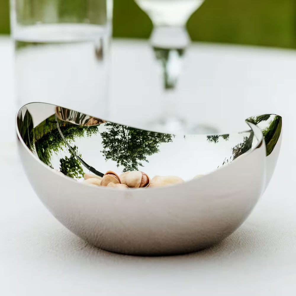 Drift mini-skål från Robert Welch är ett elegant exempel på hur funktion kan kombineras med skulptural formgivning. Med sin organiska siluett och spegelblanka yta blir den ett stilrent inslag på alla typer av dukningar – från vardag till fest. Skålen är perfekt för servering av små tillbehör som snacks, nötter, dipp eller oliver, och blir ett lyxigt designelement på bordet.