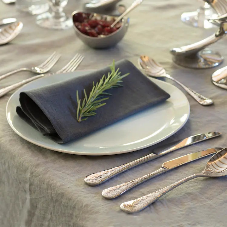 Honeybourne 42-delars bestickset från Robert Welch är en sofistikerad kombination av tradition och nutida elegans. Med sin klassiska formgivning och karakteristiska hamrade handtag – inspirerade av silversmedens traditionella hammarteknik – blir detta set ett vackert komplement till både vardagliga och festliga dukningar.