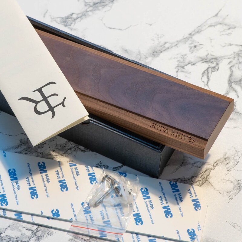 Ryda Knives A30 magnetlist i valnöt är skapad för dig som vill kombinera praktisk knivförvaring med förstklassig estetik. Designad av Viktor Ingemarsson och tillverkad med kompromisslös precision, erbjuder denna 40 cm breda knivlist en elegant och platsbesparande lösning för ditt kök – utan att tumma på vare sig stil eller funktionalitet.