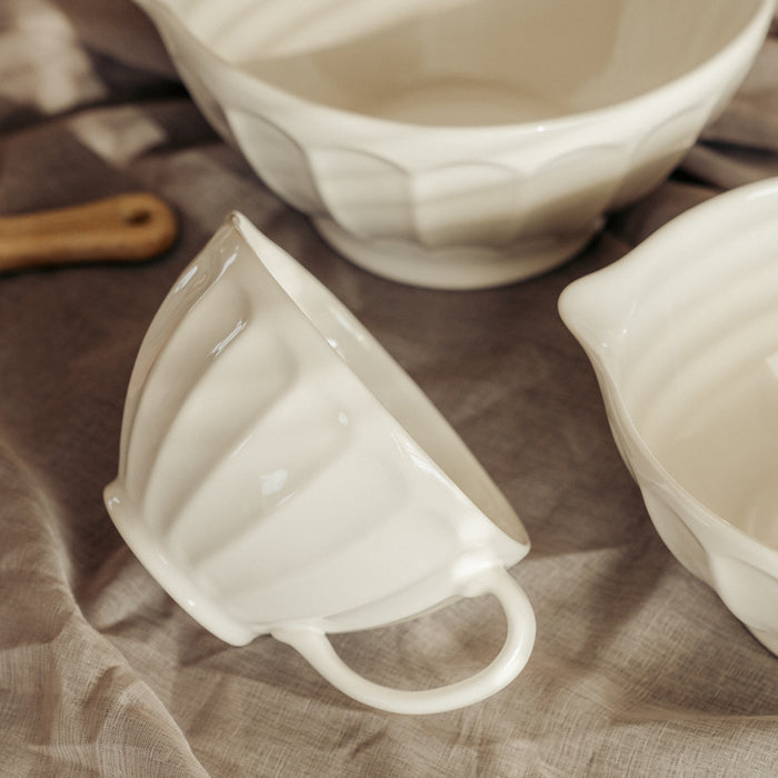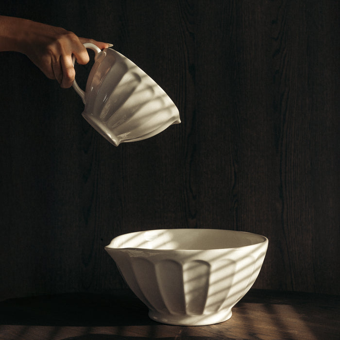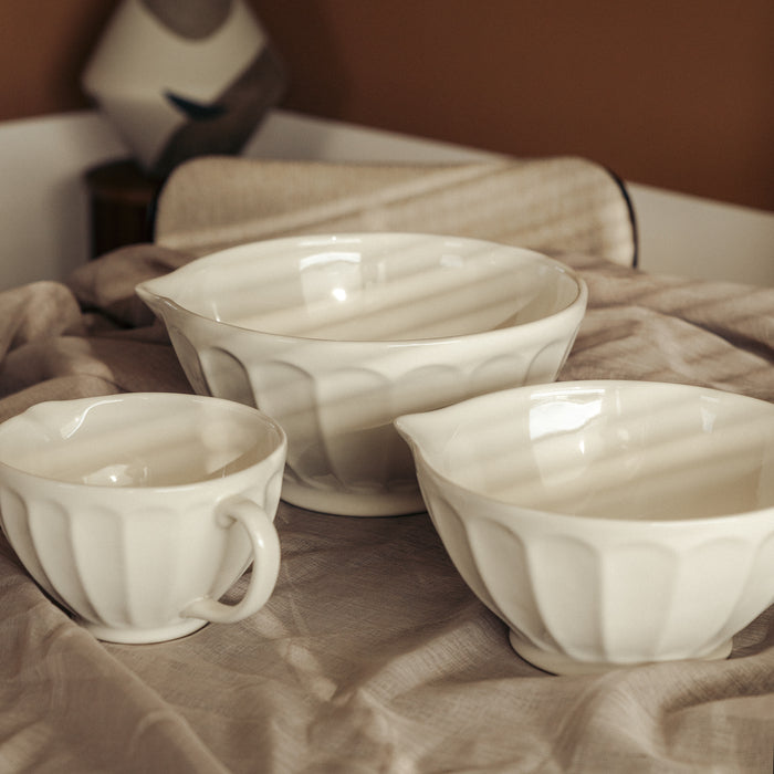 Det eleganta relieffmönstret på utsidan ger skålen ett stilfullt uttryck samtidigt som det ger ett bra grepp. Tillverkad i Portugal av tåligt steingods och tål användning i mikrovågsugn, ugn, frys och diskmaskin – en mångsidig och pålitlig skål som kombinerar form och funktion.