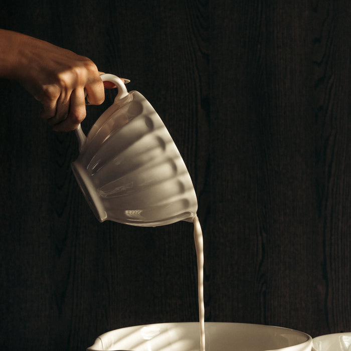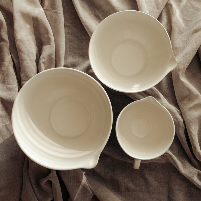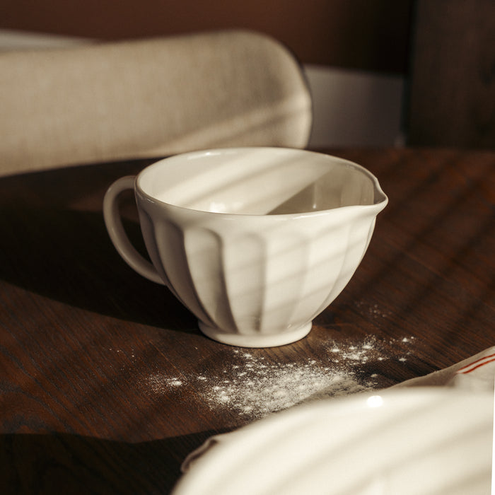 Denna praktiska skål med handtag från Anders Petter är ett perfekt tillskott i köket för mindre bakprojekt och matförberedelser. Med en kapacitet på 1,2 liter lämpar den sig väl för att vispa en mindre smet, blanda ingredienser eller servera såser och röror. Skålen är utrustad med både ett bekvämt handtag och en hällpip, vilket gör det enkelt att hälla utan spill och ger ett smidigt arbetsflöde i köket.
