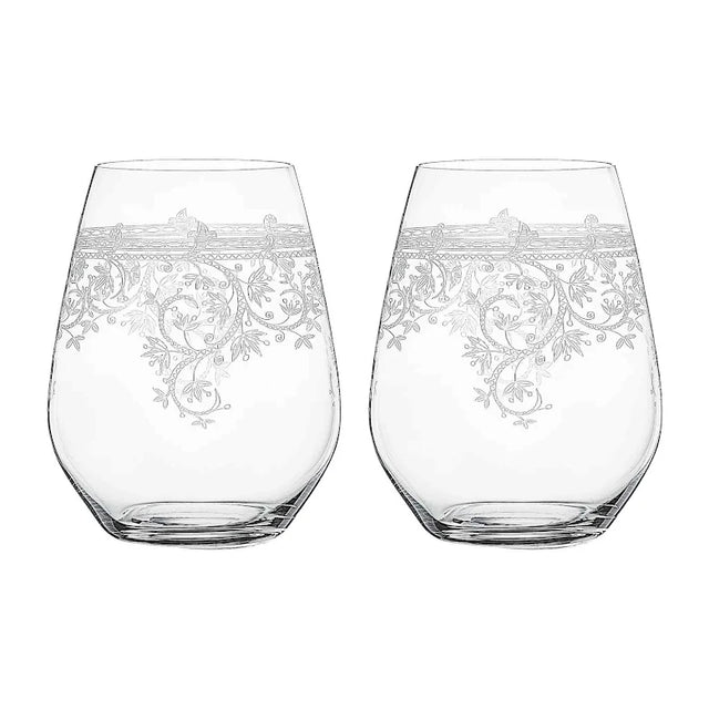 Arabesque Tumblerglas passar perfekt till vatten, juice eller whisky. Glasen har en tidlös form och en dekor med blommönster som gör dem extra fina på bordet. Mönstret är framställt med pantografiteknik – en traditionell metod som ger en tydlig och hållbar dekor. Ett bra val för dig som vill ha glas som känns både vardagliga och speciella.