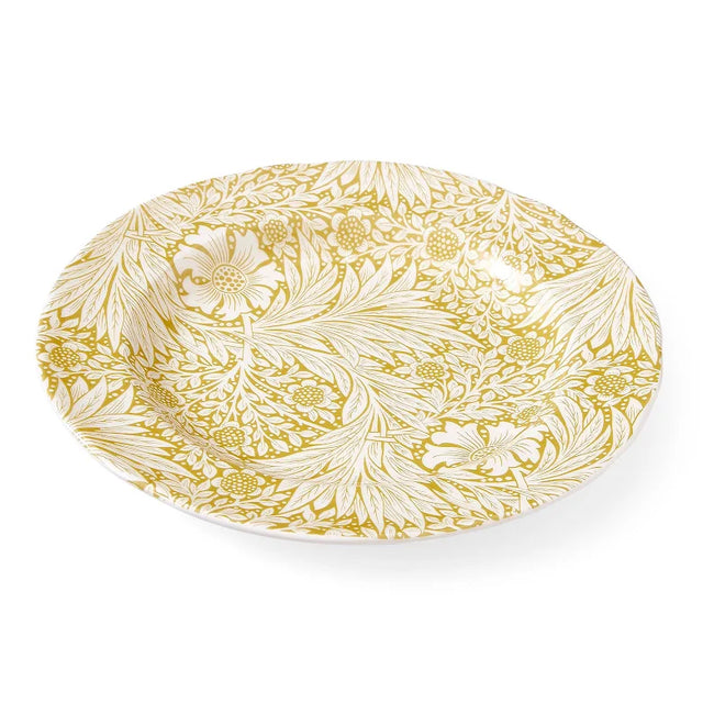 Denna eleganta tallrik från Spodes serie Morris & Co pryds av det tidlösa mönstret Marigold, hämtat ur William Morris rika designarkiv. De intrikata blomdetaljerna och den harmoniska färgpaletten ger dukningen en känsla av både tradition och hantverk. Med sin storlek på 23 cm passar tallriken perfekt för förrätter, desserter eller mindre huvudrätter – lika vacker till vardag som till fest.