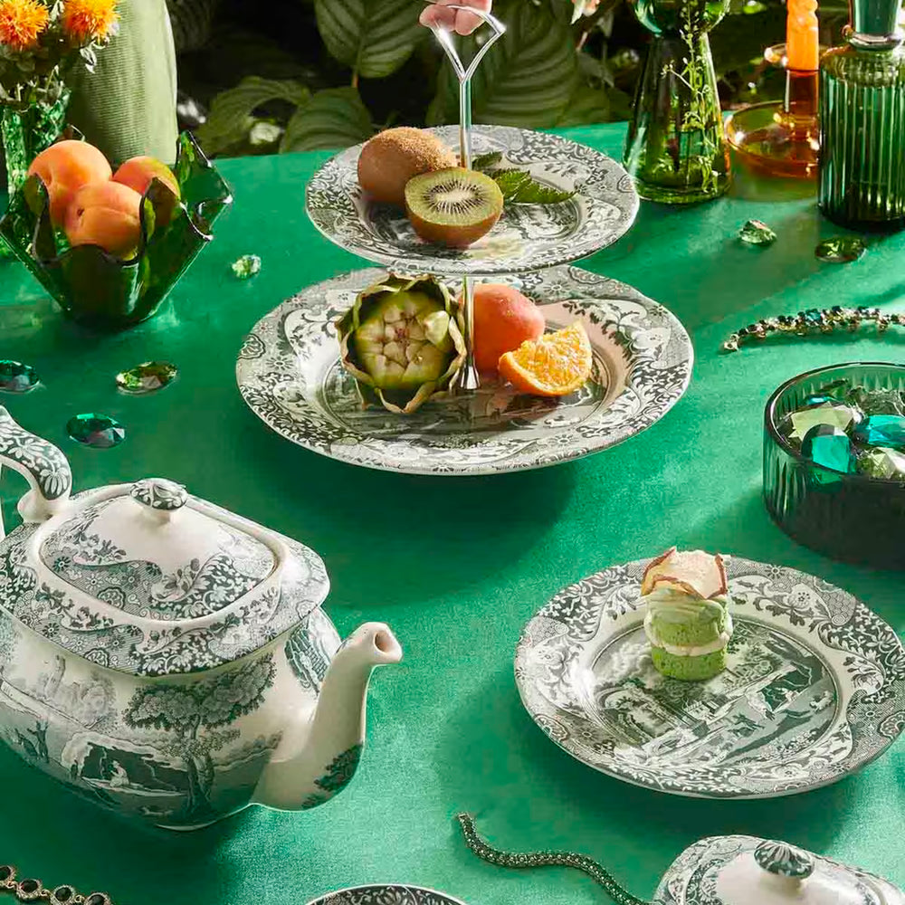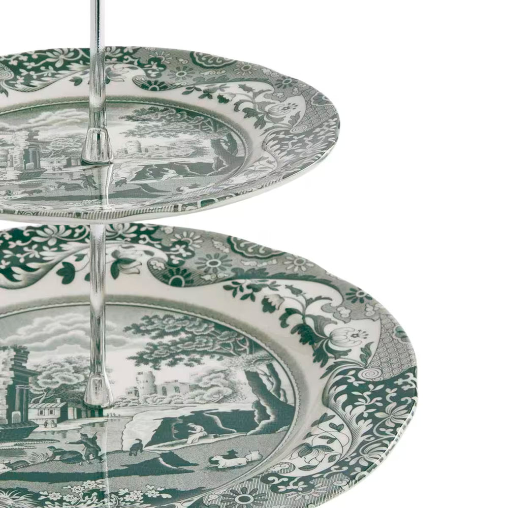 Heritage Green Italian 2-vånings kakfat från Spode förvandlar varje fikastund till något extra. Det välkända Blue Italian-motivet, här i en djupgrön och sofistikerad ton, ger serveringen ett elegant uttryck med rötter i brittisk porslinstradition.