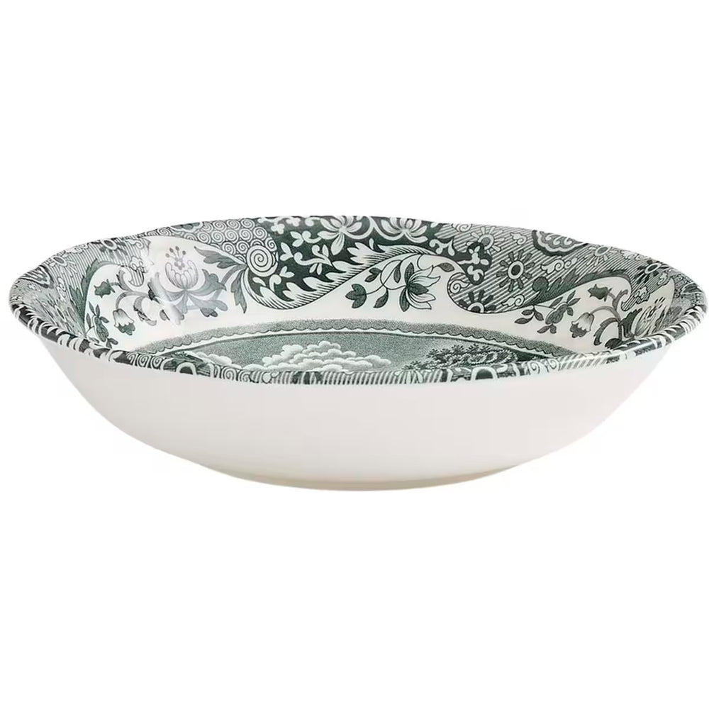 Heritage Green Italian Skål 15 cm förenar tidlös brittisk design med praktisk användning i vardagen. Det välkända italienska landskapsmotivet – hämtat från Spodes ikoniska Blue Italian – får här nytt liv i en djup, elegant grön ton. Skålen passar lika bra till frukostflingor och soppor som till småserveringar eller desserter, och blir en vacker detalj på varje dukning.