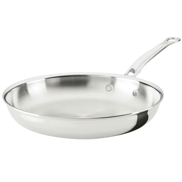 Det betyder snabb uppvärmning, jämn temperatur och perfekt stekyta – oavsett om du bryner, steker, sautera eller tillagar känsligare råvaror. De förstärkta kanterna håller formen år efter år, och de plana, sömlösa nitarna ger en hygienisk och helt slät insida som är enkel att rengöra.