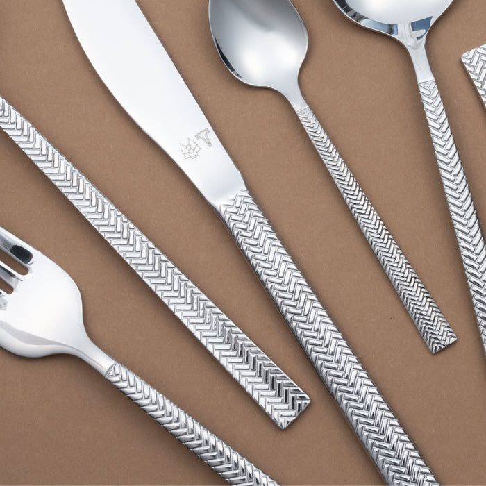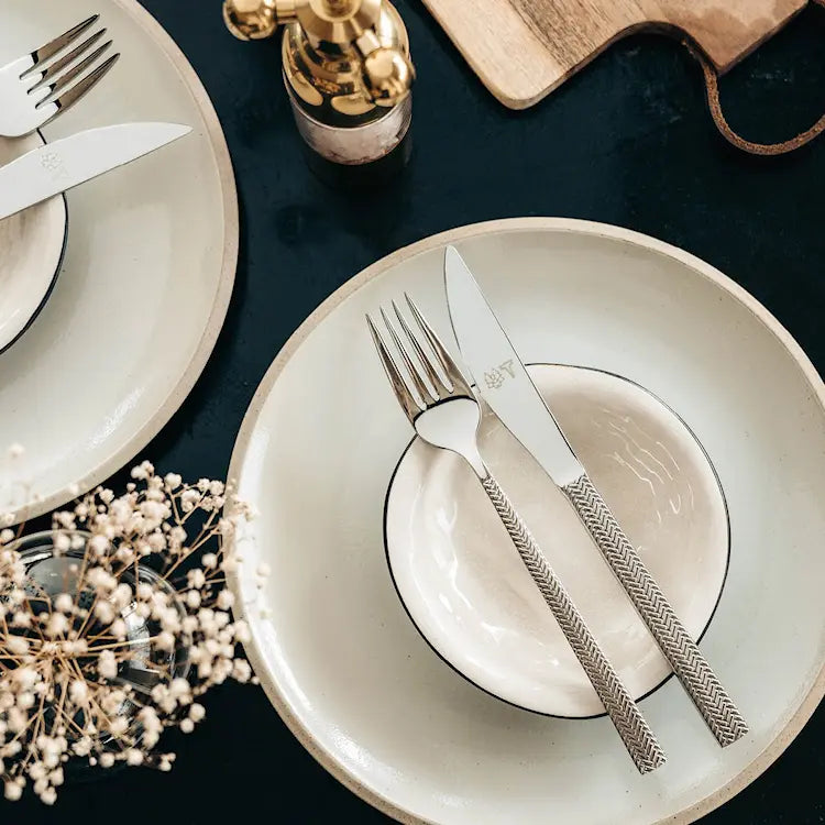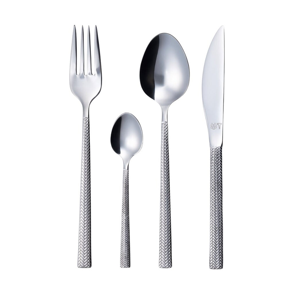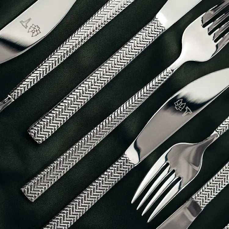 Glöd bestickset från Vargen & Thor är en elegant uppgradering av en älskad klassiker. Med sitt unika fiskbensmönster på handtagen och den blanka stålytan får du ett set som kombinerar tidlös design med modern känsla. Tillverkat i Portugal av högkvalitativt rostfritt stål ger besticken både ett bekvämt grepp och en hållbar finish som tål daglig användning. Perfekt för dig som vill ha bestick som känns lika lyxiga till vardags som till fest.