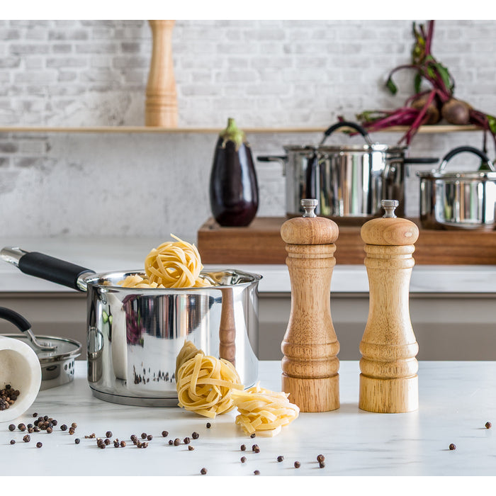 Med Classic salt- och pepparkvarnset från Anders Petter får du två vackra kvarnar i naturligt FSC-certifierat gummiträ som kombinerar klassisk design med hållbar funktion. De keramiska malverken ger en jämn och effektiv malning, oavsett om du vill ha finmalt salt eller grovkrossad peppar.