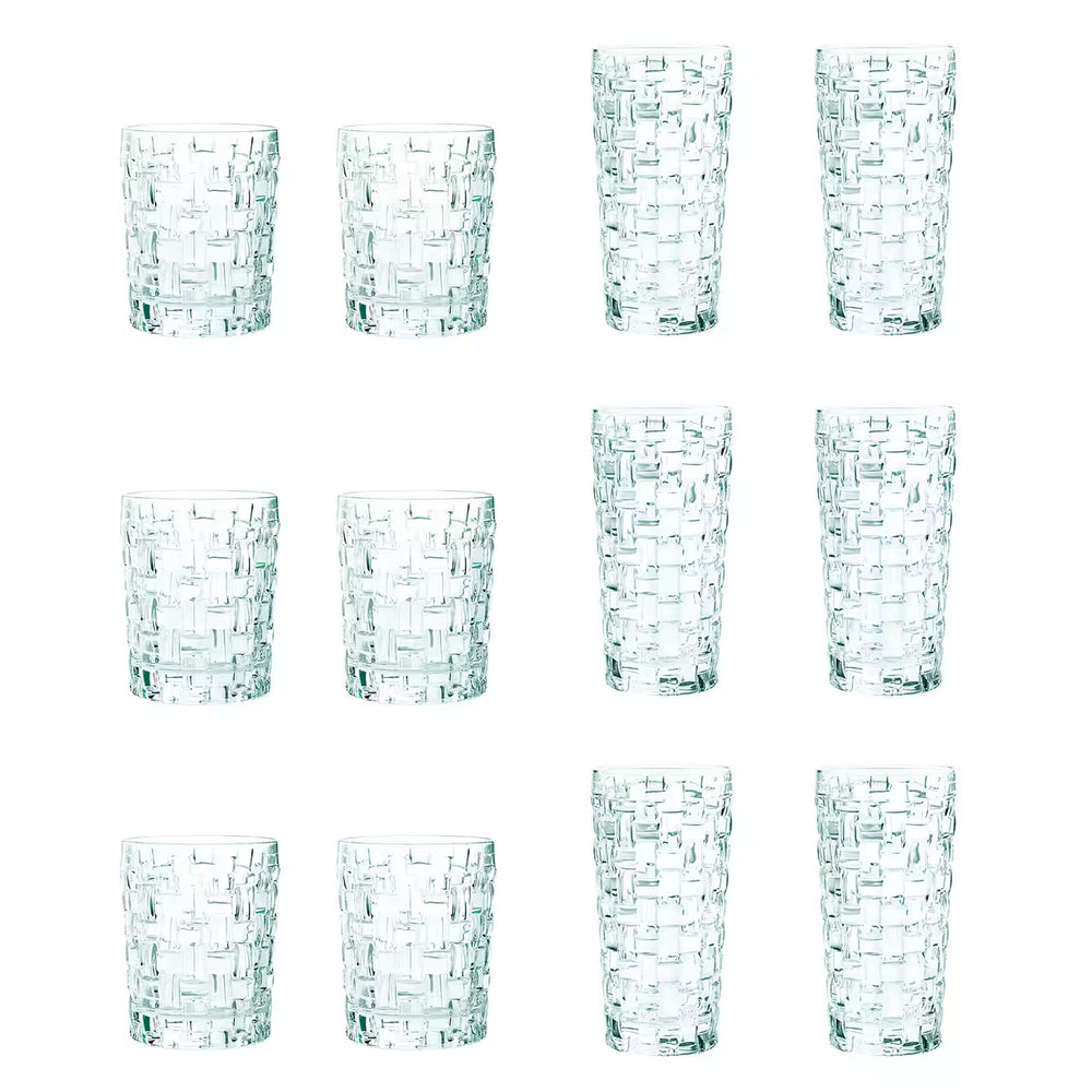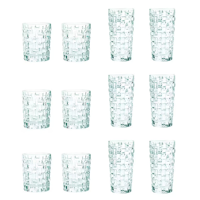 Ge din dukning en touch av glamour med Nachtmann Bossa Nova dricksglas. Setet innehåller både longdrink- och tumblerglas, alla i gnistrande kristallglas med det ikoniska flätade rutmönstret som reflekterar ljuset vackert. Perfekta för allt från fräscha drinkar till vatten och juice – en elegant kombination av funktion och design som förhöjer varje servering.