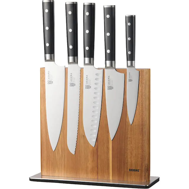 Ge dina favoritknivar en elegant plats på köksbänken med Dorre Kira knivställ. Det magnetiska knivstället har starka magneter på båda sidor som håller knivarna säkert på plats och gör dem lättåtkomliga vid matlagning.