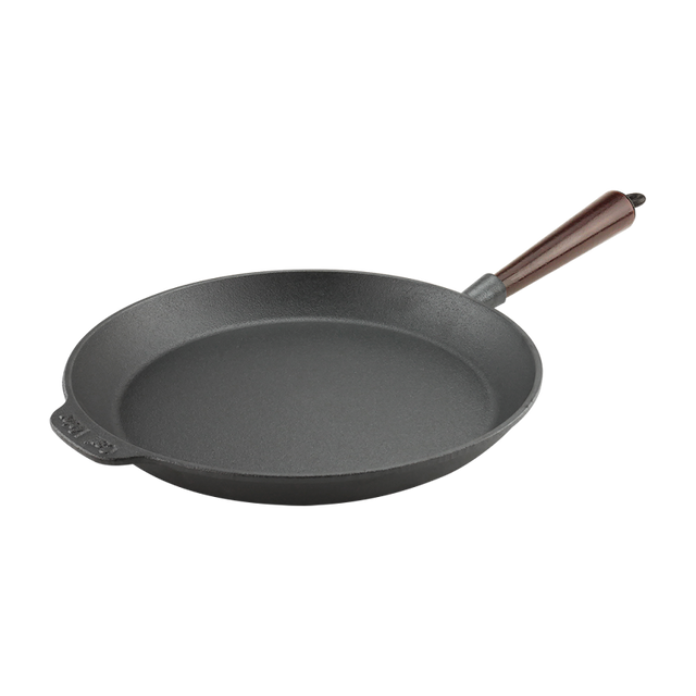 Carl Victor stekpanna i gjutjärn är ett oumbärligt redskap för dig som vill laga mat med jämn värme och perfekt stekyta. Den tunga gjutjärnskroppen sprider värmen effektivt och ger fantastiska resultat – från saftiga köttbitar till krispiga grönsaker. Med tiden får pannan en naturlig non-stick-yta som bara blir bättre ju mer du använder den. Trähandtaget i mörkbetsat bokträ ger både stil och ett bekvämt grepp.