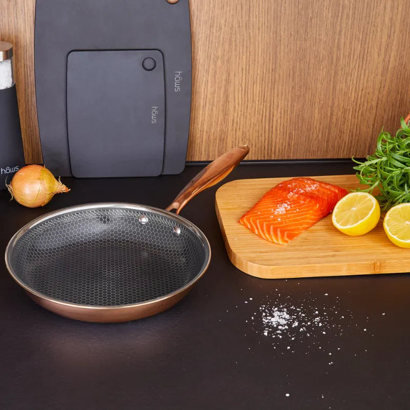 Denna stekpanna från Hâws Santo-serien är ett utmärkt val för vardagsmatlagning där jämn värme och bra stekyta gör skillnad. Konstruktionen i tre lager rostfritt stål tillsammans med den slitstarka hybridbeläggningen ger stabil värmefördelning och fina stekresultat.