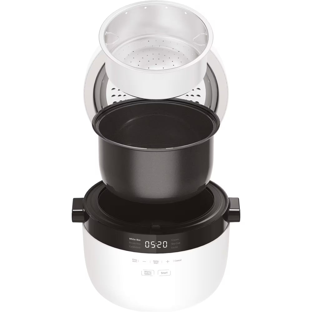 Med sex smarta program kan du tillaga ris, spannmål och andra rätter, medan ångfunktionen är perfekt för fisk, grönsaker eller dumplings. En risslev och ett måttglas medföljer för smidig användning. Den smala designen ger ett stilrent uttryck, och avtagbara delar tål maskindisk för enkel rengöring.