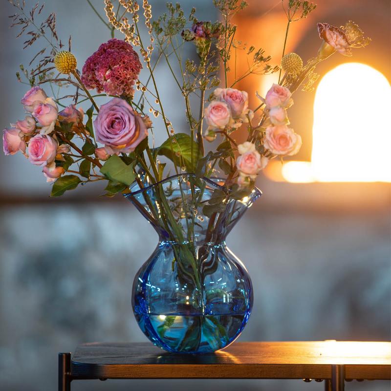 Vasens lekfulla och organiska form, inspirerad av en öppen blomma, hjälper till att hålla blommorna på plats och framhäver deras naturliga skönhet. Boblen Pride finns i fyra härligt transparenta färger och varje exemplar är munblåst, vilket innebär att ingen vas är exakt likadan – precis som varje människa är unik.