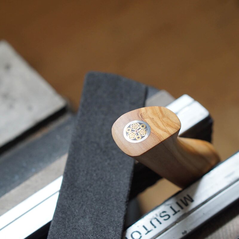 Det ergonomiska handtaget i franskt olivträ med detaljer i mässing ger både ett bekvämt grepp och ett visuellt intryck av tidlös kvalitet. Som alla knivar från Ryda levereras den i en elegant presentförpackning med en informationsfolder tryckt på handgjort papper – en perfekt present eller investering i ditt eget kök.