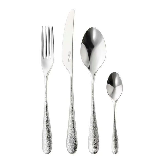 Sandstone bestickset från Robert Welch kombinerar mjuka former med ett unikt naturinspirerat mönster som ger en rustik men samtidigt modern känsla till din dukning. Med sin vackert texturerade yta skapas subtila reflektioner som fångar ljuset på ett sofistikerat sätt – perfekt för att sätta pricken över i vid både vardagsmiddagar och festligare tillfällen.