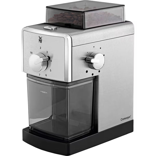 WMF Stelio Kaffekvarn är det första steget mot en fulländad kaffeupplevelse, oavsett om du föredrar fransk press eller filterkaffe. Utrustad med en robust stålskivekvarn levererar den jämn malning som bevarar kaffets arom och smak. Med 17 justerbara malningsgrader – från grovt till fint – kan du enkelt anpassa malningen efter bryggmetod och smakpreferens.