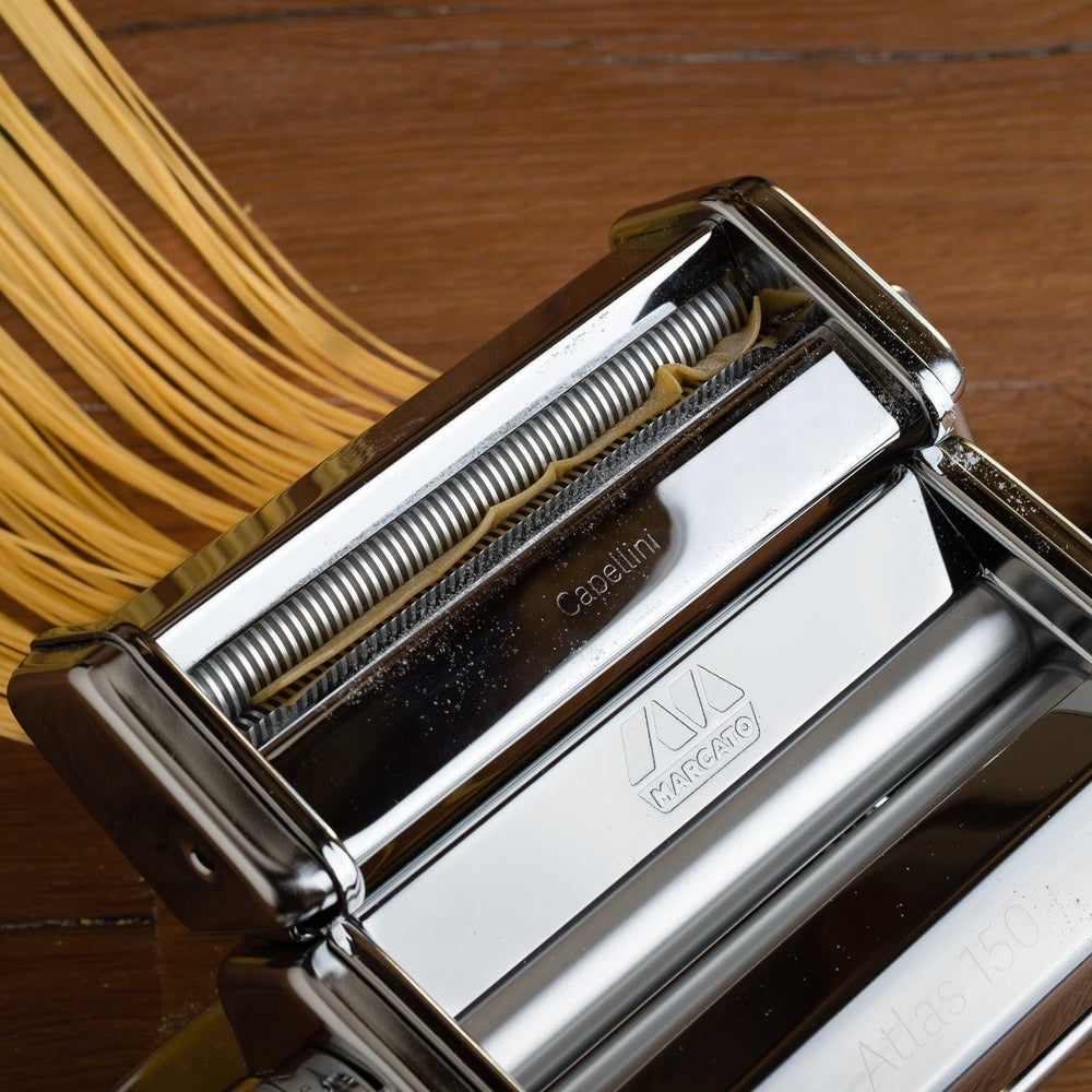 Med Marcato Spaghettiinsats i silverfärg blir det enkelt att tillverka perfekt formad spaghetti hemma. Denna insats är utformad för att användas tillsammans med Marcato Atlas 150 pastamaskin och är ett oumbärligt tillbehör för alla som älskar att skapa egen pasta. Den kompakta designen gör det enkelt att förvara insatsen på en hylla eller i ett skåp utan att den tar upp mycket plats.