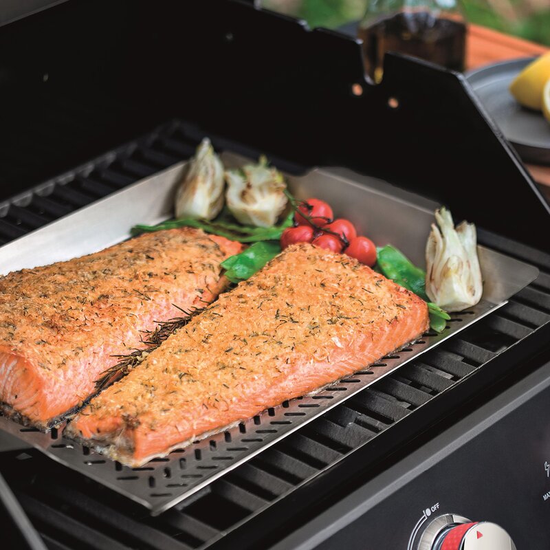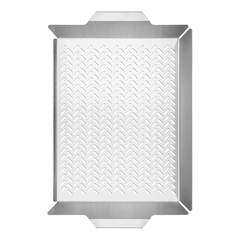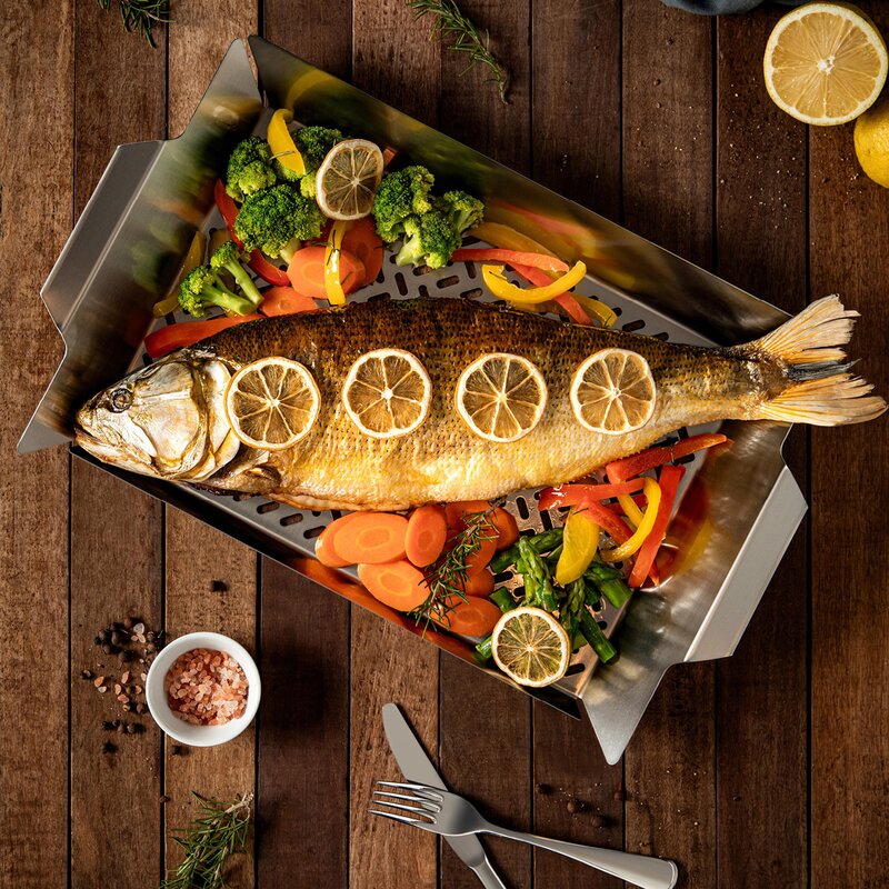 Grillbrickan är tillverkad i högkvalitativt borstat rostfritt stål, vilket gör den extremt hållbar och motståndskraftig mot höga temperaturer. Den rejäla ytan på 48 x 32 cm gör det enkelt att tillaga flera råvaror samtidigt, utan att kompromissa med resultatet. Den är särskilt idealisk för mindre eller ömtåliga ingredienser som annars riskerar att falla igenom gallret, exempelvis tigerräkor, fiskfiléer eller grönsaker.